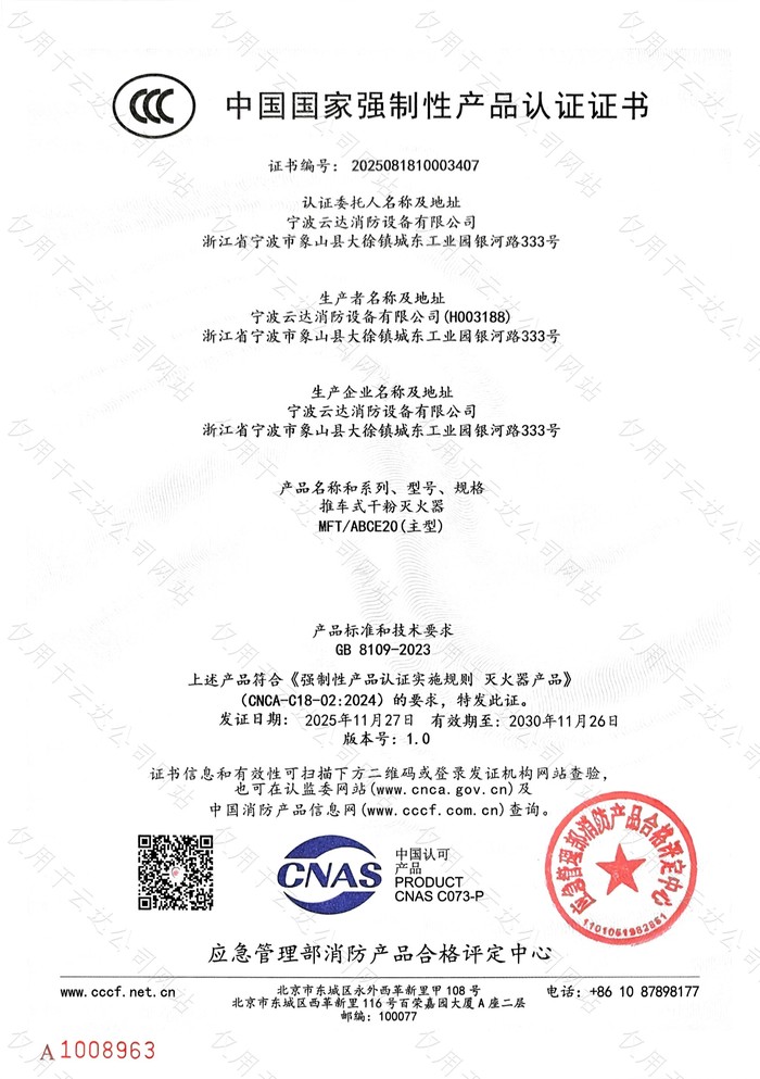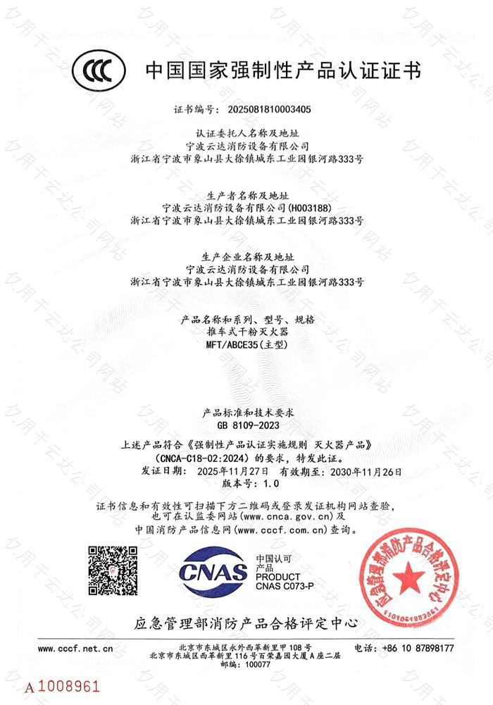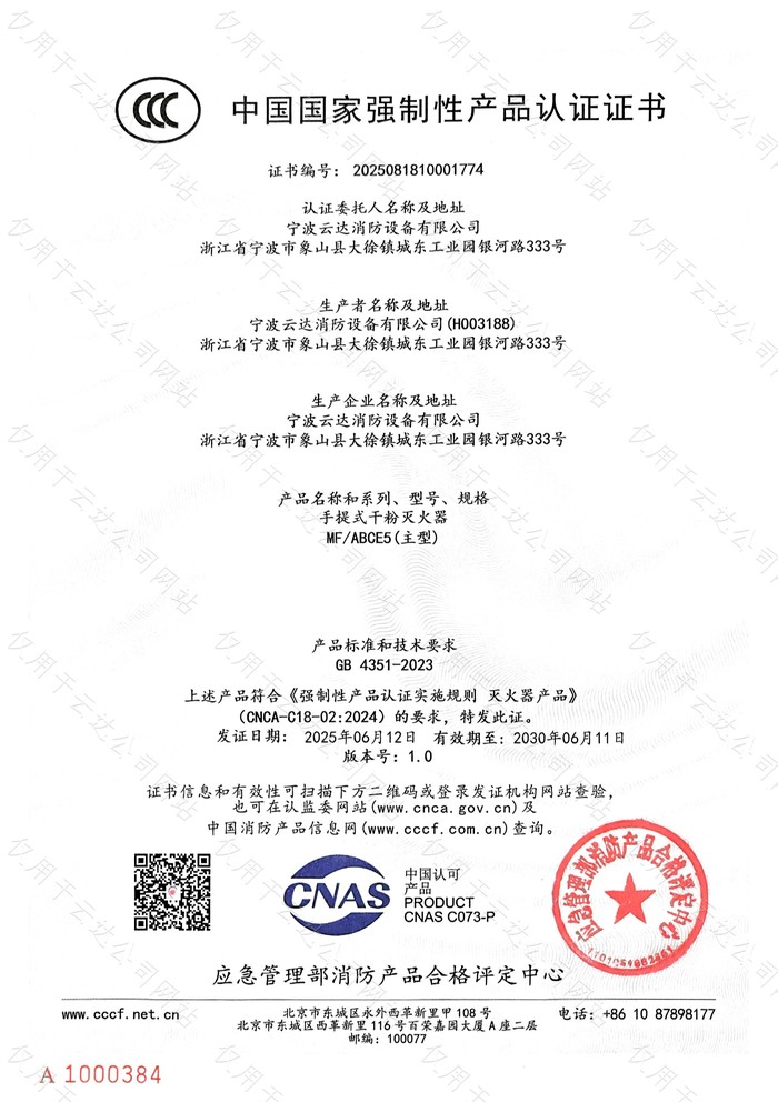 MF/ABCE5 手提式干粉灭火器 3C证书