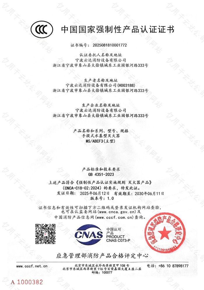 MS/ABEF3 手提式水基型灭火器 3C证书